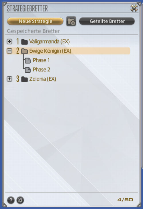 Achtung! Bei mehr als 20 Strategiebrettern, werden die ältesten aus der Liste gelöscht.