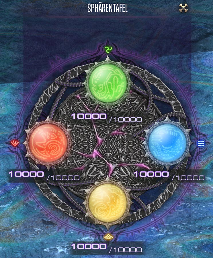 Nachdem wir die Materialien bei Gerolt abgeliefert haben, erhalten wir nun eine Sphärentafel, auf der es nun insgesamt 4 Elementar-Sphären gilt zu füllen.