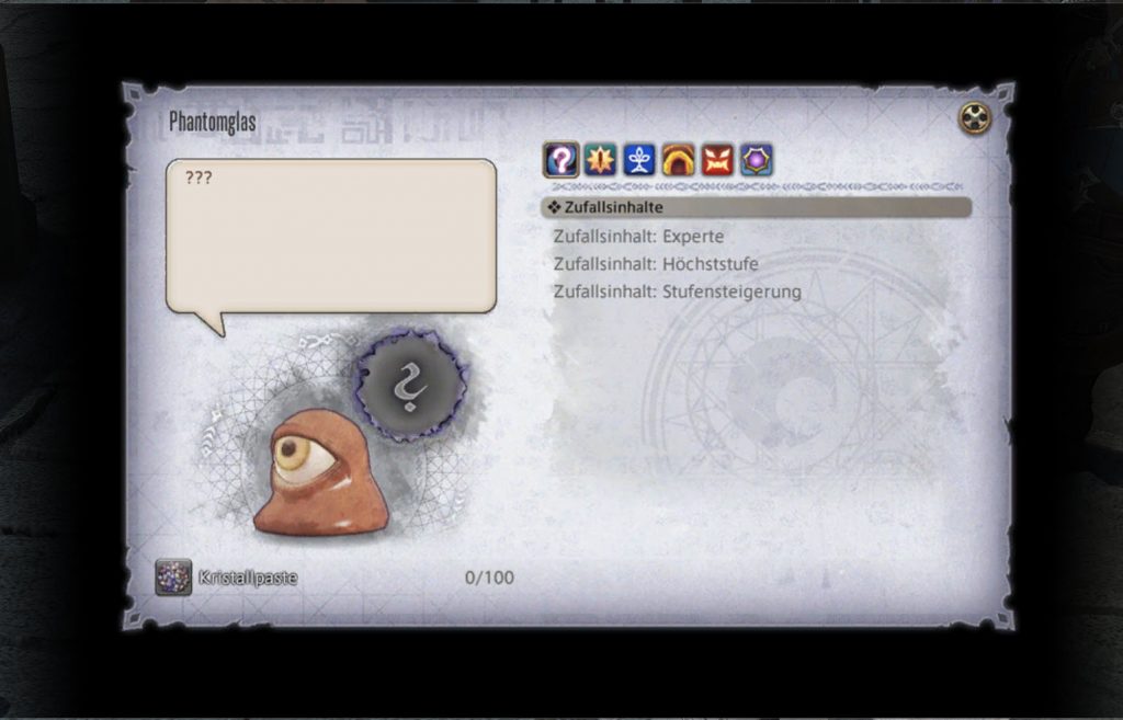 Den aktuelle Anzahl an Kristallpaste, könnt ihr jederzeit über das Phantomglas einsehen.