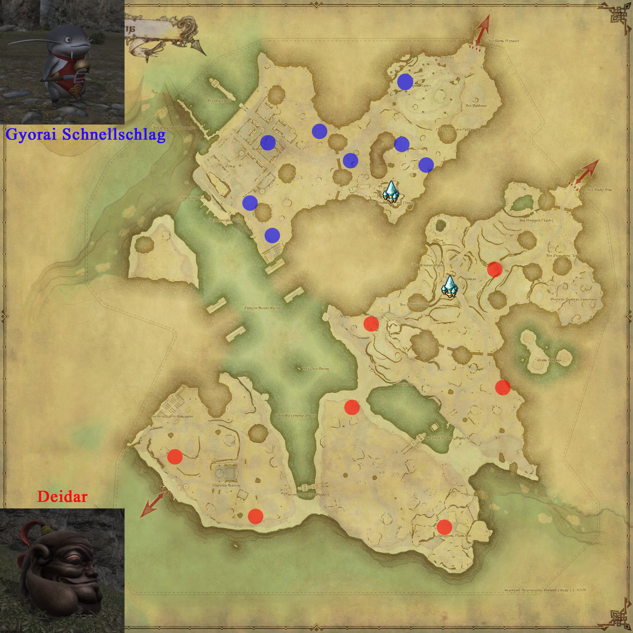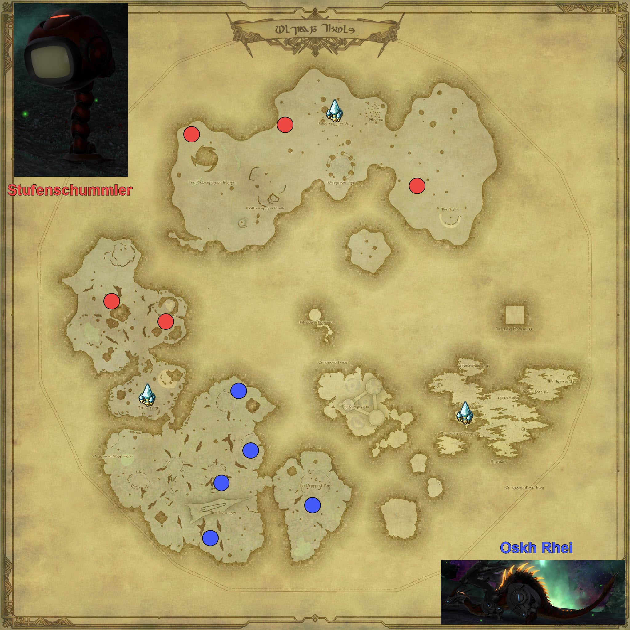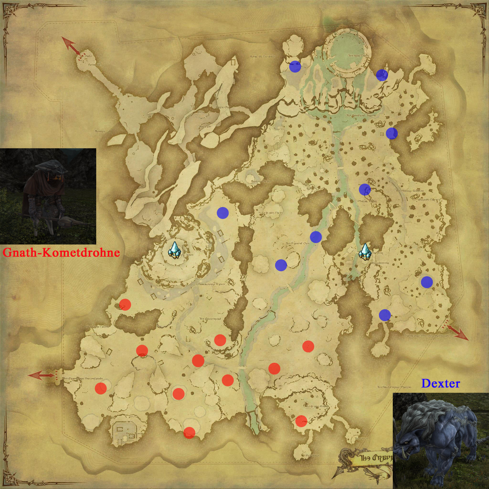 - Es zählen alle Karten, die Mor Dhona als Ziel haben (Vergilbte Keilerleder-Karte, Vergilbte Basiliskenleder-Karte und Vergilbte Krötenleder-Karte oder Unversteckte Lederkarten)