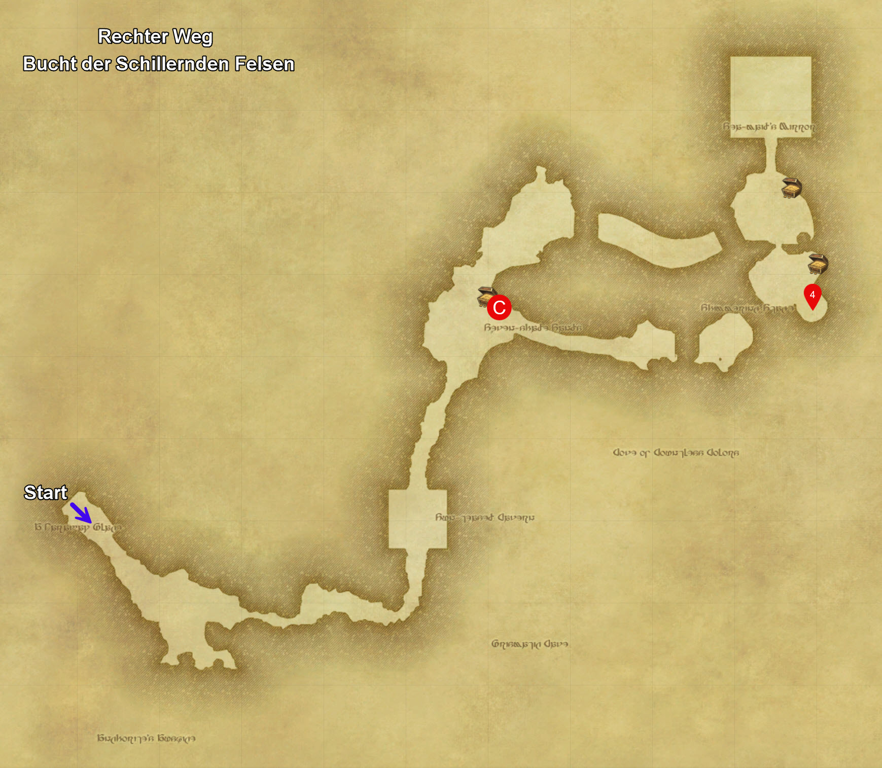 Es geht nun den Weg weiter entlang, bis zum finalen Boss (C).