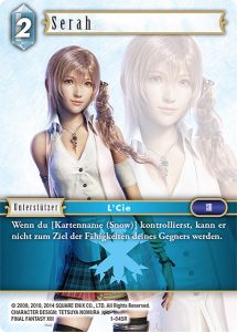 Nichtsdestotrotz werde ich euch ein paar Karten nennen, die gut mit Snow funktionieren. Besonders erwähnenswert sind XIII-Charaktere, die weniger als 2 CP kosten.