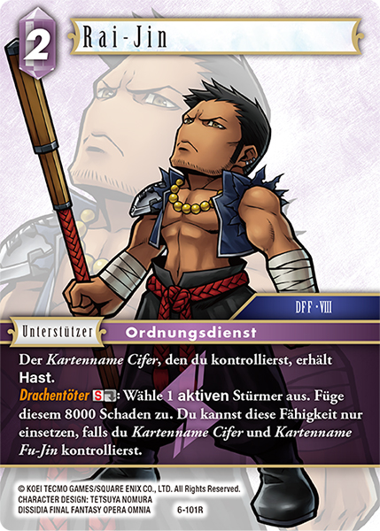 - „An Ende jedes deiner Züge und wenn du 4 oder mehr Charaktere der Kategorie VIII kontrollierst, ziehe 1 Karte.“