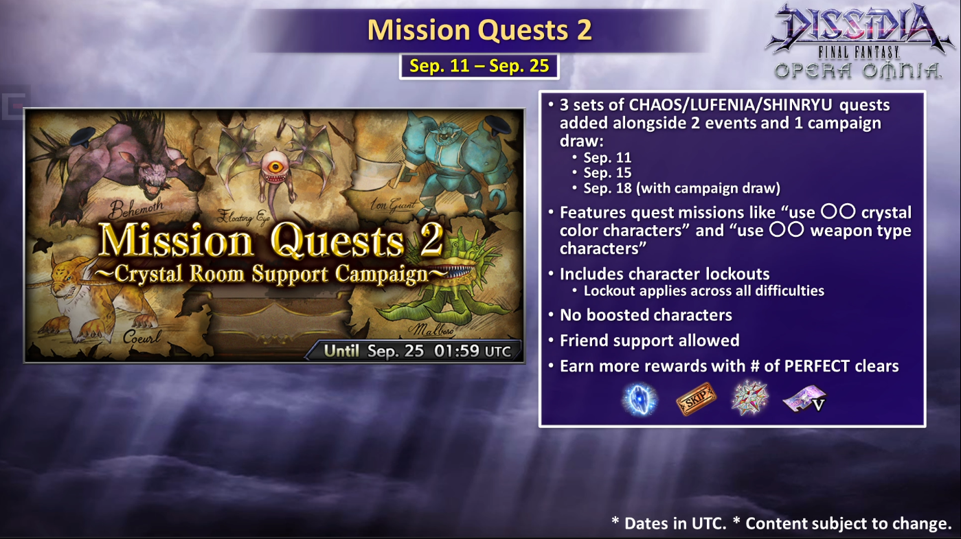 Dissidia: Final Fantasy Opera Omnia: Content Übersicht für September 2023