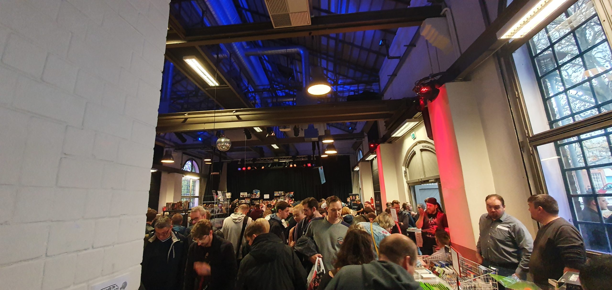 Als sich die Tore der Börse öffneten, bewegten sich die wartenden Gäste in einem raschen Tempo hinein. Nach dem die Gäste und auch ich 6€ Eintritt zahlte und einen amüsanten „Pacman-Stempel“ aufs Handgelenk bekam, konnte sich die Allgemeinheit in zwei Bereiche der Halle begeben.