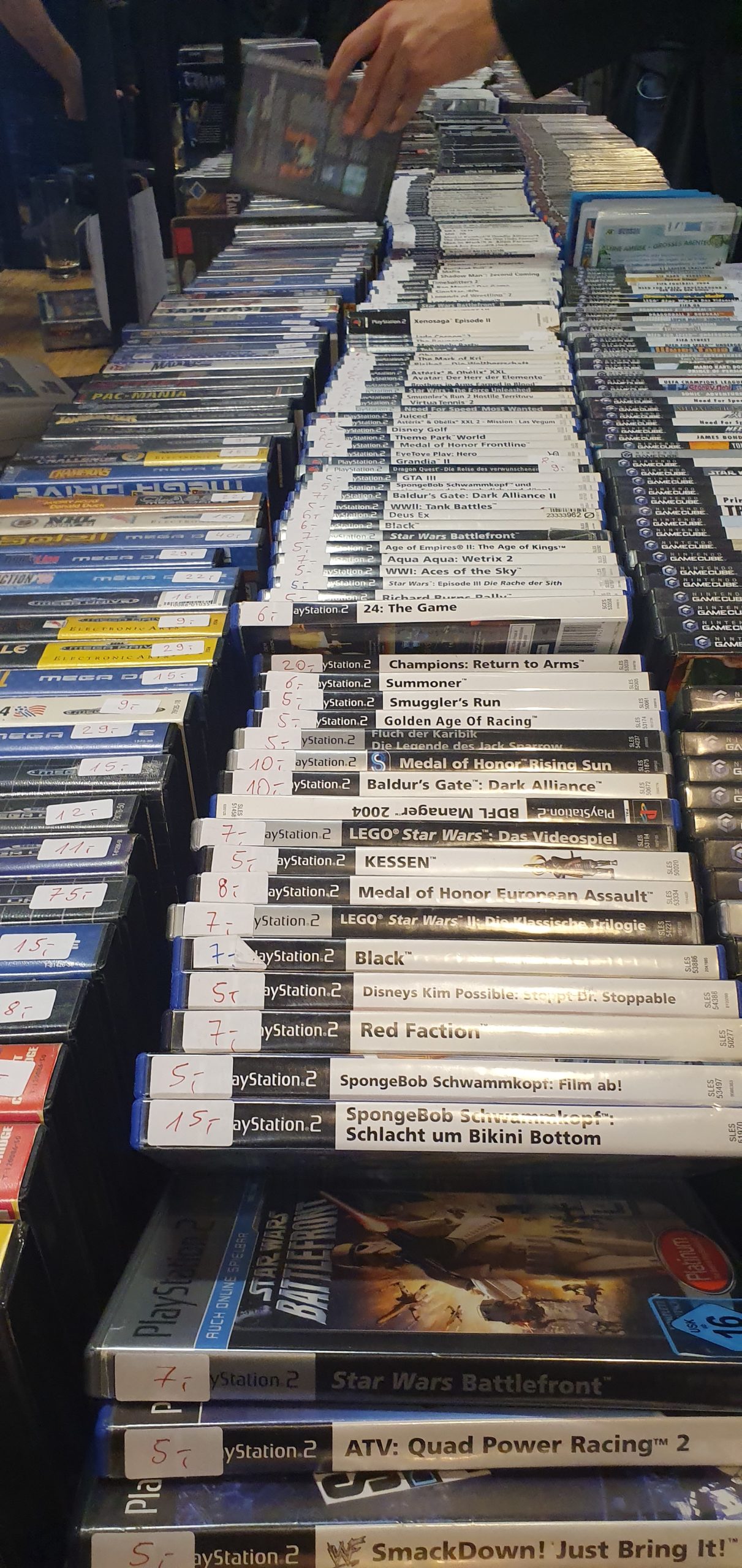 Hier konnte ich die verschiedene Vielfalt jeweiliger Verkäufer sehen und spüren. Bemerkenswerte Stände waren bspw. eine Spezialisierung von Peripherien alter Konsolen. Zum Verkauf standen Memory Cards, Rumble Packs, diverse Anschlusskabel oder ganze Platinen und Laufwerke der verschiedenen alten Konsolensysteme. Andere hingegen verkauften und konzentrierten sich auf diverse Spiele und diverse Systeme aus dem asiatischen Raum. An dem nächsten Stand waren einige private Händler dabei, die keine wirkliche Thematik verfolgten, aber verschiedene Möglichkeiten anboten aus „seltenen Retrogames“ bis hin zu besonderen Stücken, die teilweise sehr exotisch wirkten.