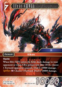 Das Feuer/Wasser-Monster-Deck beinhaltet 13 Monster-Karten, die im Fokus dieses Decks stehen, und besondere Charaktere, die gut mit Monstern zusammen arbeiten. Auch enthalten sind starke Stürmer-Karten, wie [24-001L] Ifrit (XVI) und [24-005L] Clive.