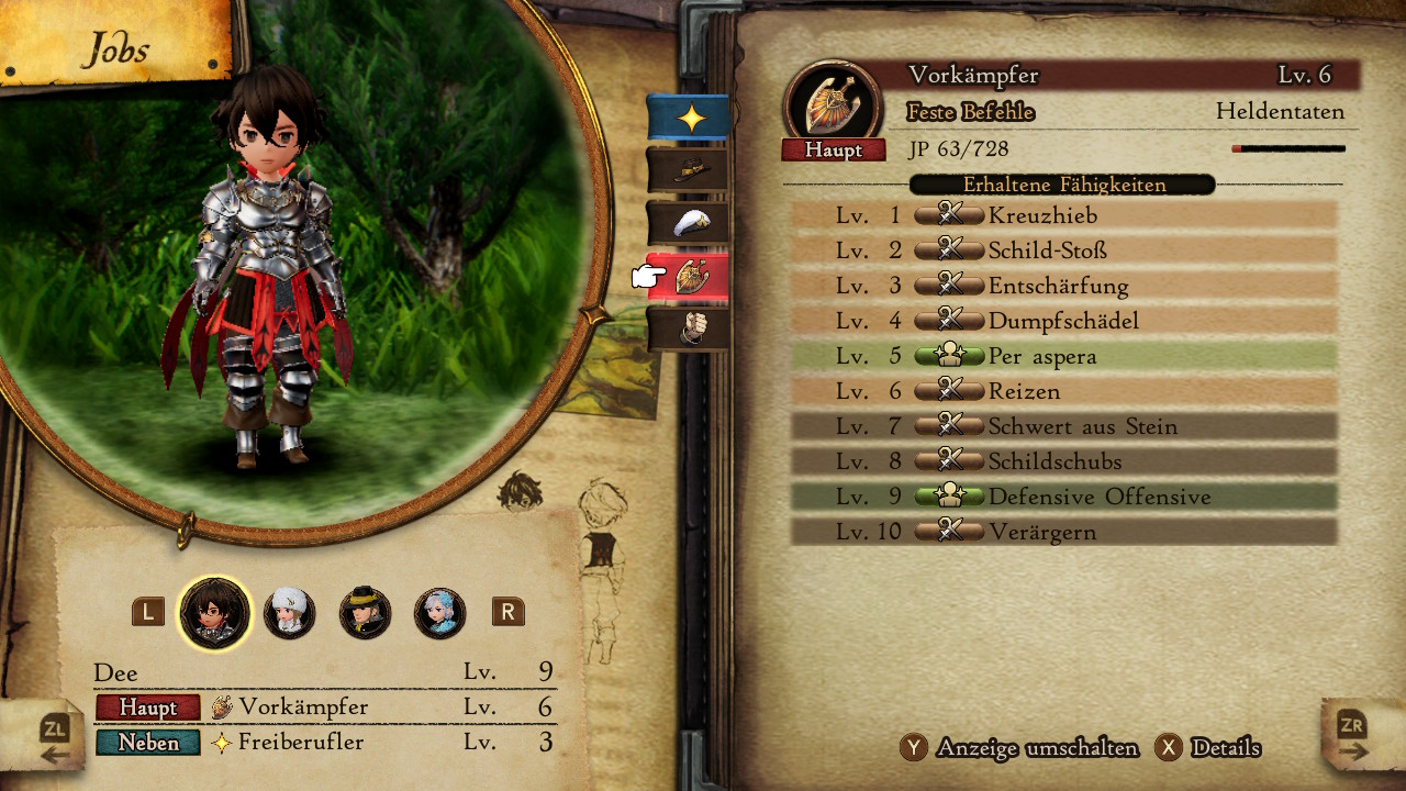 Die Jobs sind außerhalb von Kämpfen jederzeit tauschbar und können entweder als Haupt- oder Nebenjob an den Charakter angepasst werden.