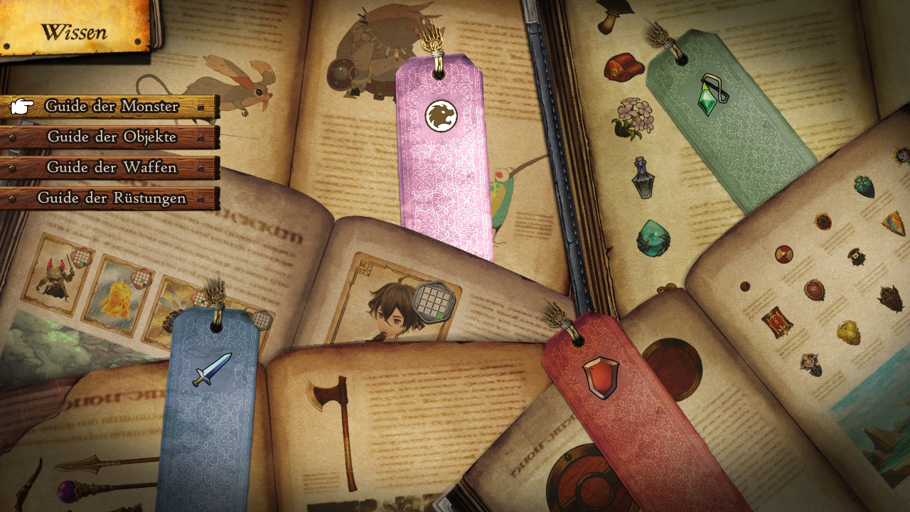 - Wissen (Guides der Monster, Objekte, Waffen und Rüstungen),