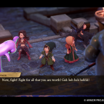 Das Ende der Kämpfe wirkt momentan etwas unspektakulär, da der Siegersound ungewohnt kurz ausfällt und man, wie typisch für die Reihe, nach wie vor viel Text wegklicken muss. Dafür entschädigen jedoch die humorvollen Bildschrimtexte enorm. Eine Mischung unterschiedlicher deutscher Dialekte sorgt für charmante Situationskomik. So begegnet man etwa Berliner Schnauze oder plattdeutschen Dialogen, das sorgt regelmäßig für Schmunzler und hebt die Lokalisierung positiv hervor.